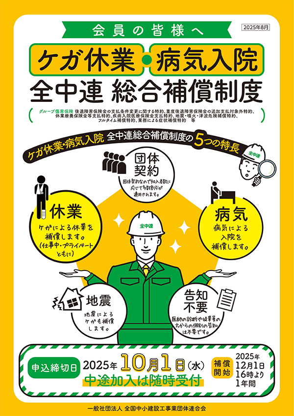 建設事業者が抱えるリスクケガ休業・病気入院を補償する制度です。
